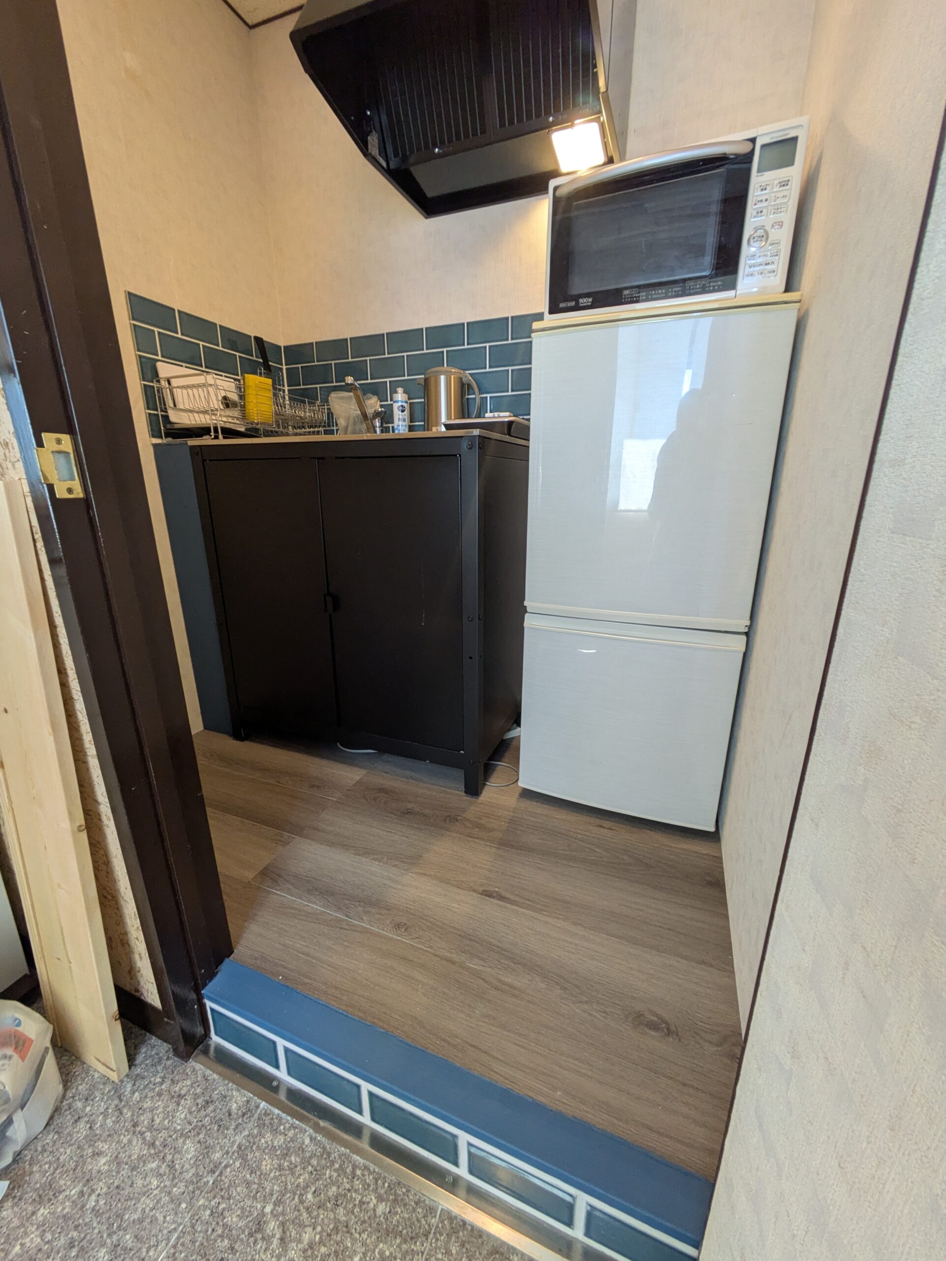 PERCH富山オフィス3階、簡易宿泊スペースにあるこじんまりとした給湯室。