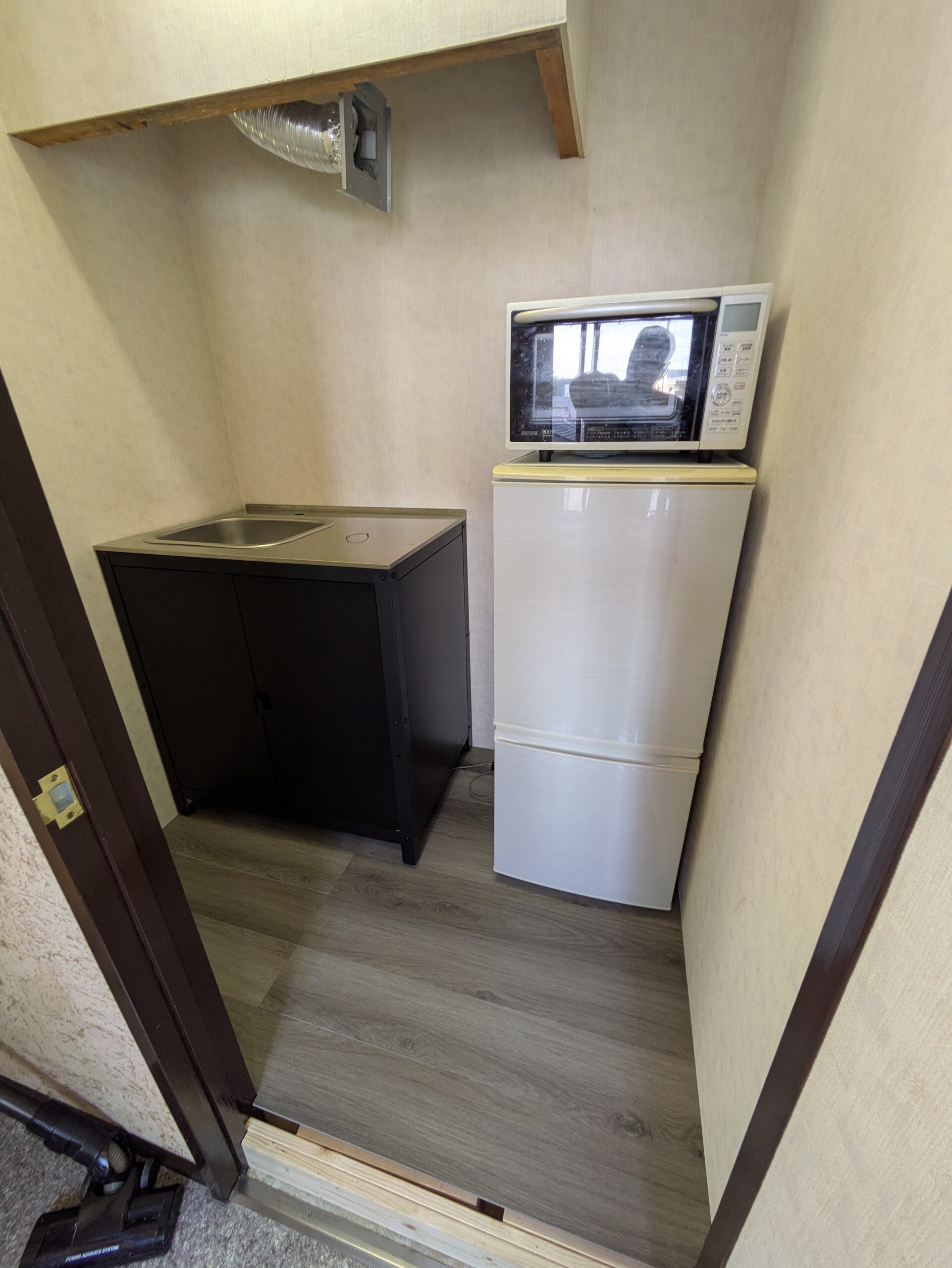 PERCH富山オフィス3階、簡易宿泊スペースにあるこじんまりとした給湯室。
