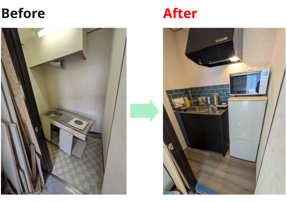 換気扇も新しく取り換え、見違えるように生まれ変わったミニキッチンが完成!