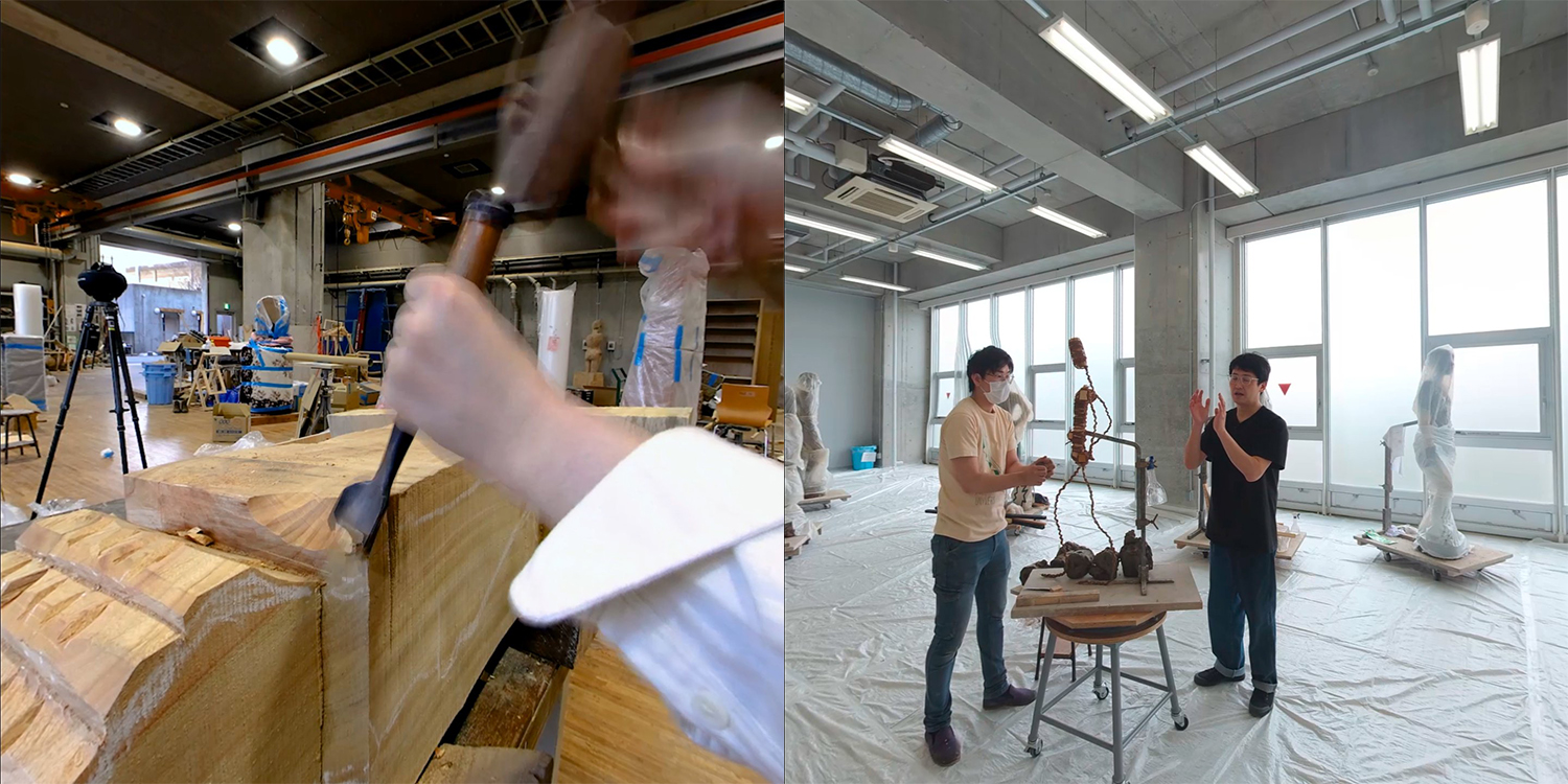 また私の友人で、武蔵野美術大学で教授を務める彫刻家の冨井大裕さん、東京国立近代美術館美術課長の三輪健仁さん両氏の協力を得て、彫刻作品とその制作過程を360度カメラで撮影する、芸術教材開発がスタートしました。